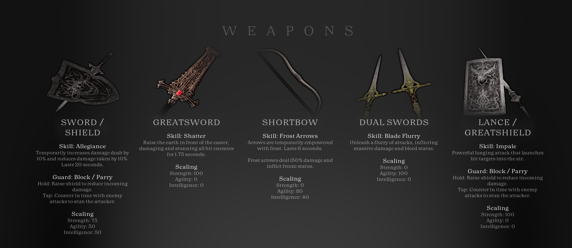 Each weapon has a unique skill to stand out beyond its moveset. Most weapon skills have cooldowns, so you'll want to be swapping weapons to get the most out of them and best suit the situation.